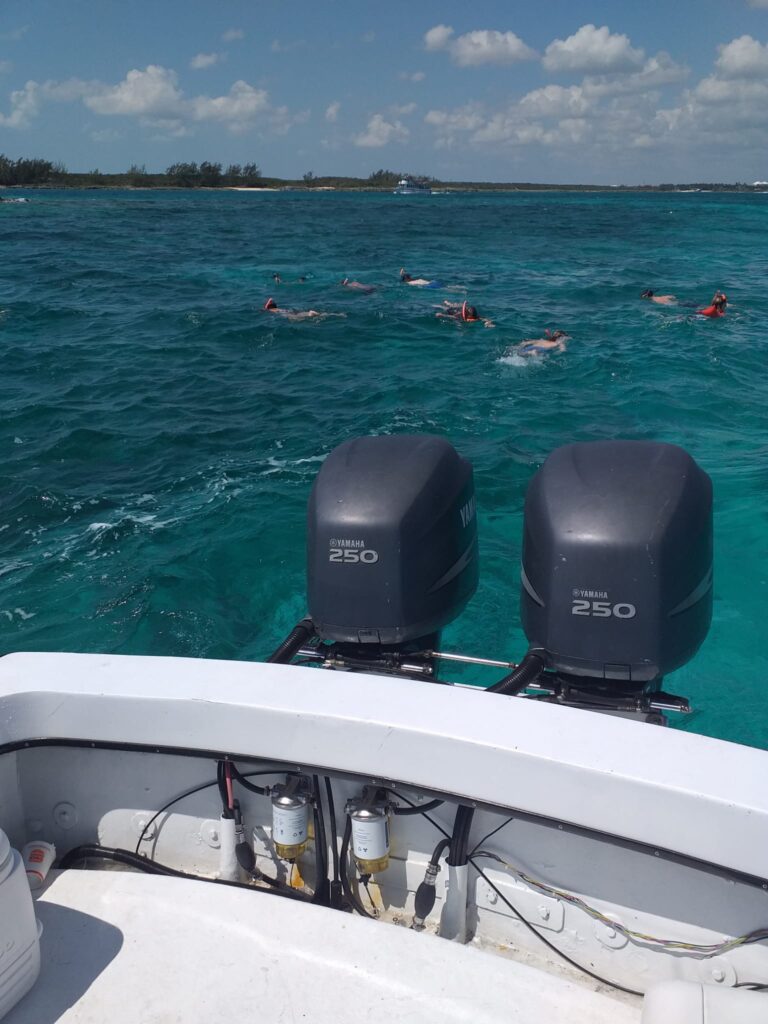Cruse the beautiful Nassau Harbor to beautiful Rose Island on a power boat ride around Paradise Island and Gilligan’s Island. There you will Snorkel in beautiful crystal-clear waters around some of our most healthy and popular reef along with swimming with sea turtles. From there we will be going to the white sandy beaches of Rose Island where if you like we can visit a private restaurant and bar and enjoy a beach day. Soft drinks, water, ice and snacks included.